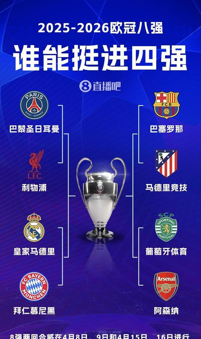 随着8-3、4-1等极具视觉冲击力的大比分接连上演,欧冠八强对阵图正式揭晓,多组宿命重逢、风格对撞的巅峰对话蓄势待发,究竟哪支王者之师能笑纳最终荣耀?