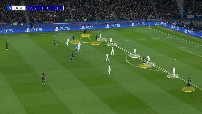 上周巴黎首回合较量中,大巴黎拆解切尔西人盯人体系的战术则另辟蹊径:球员先扎堆聚拢,再突然分散拉开,辅以流畅的全场换位,彻底打乱切尔西的防守部署。