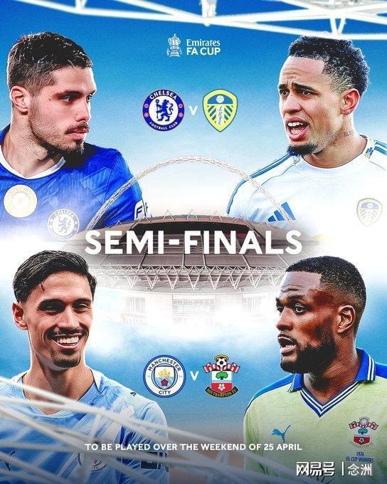 足总杯1/4决赛战罢,曼城、切尔西、利兹联、南安普顿锁定四强。经过抽签后,足总杯半决赛对阵出炉:曼城VS南安普顿,切尔西VS利兹联。